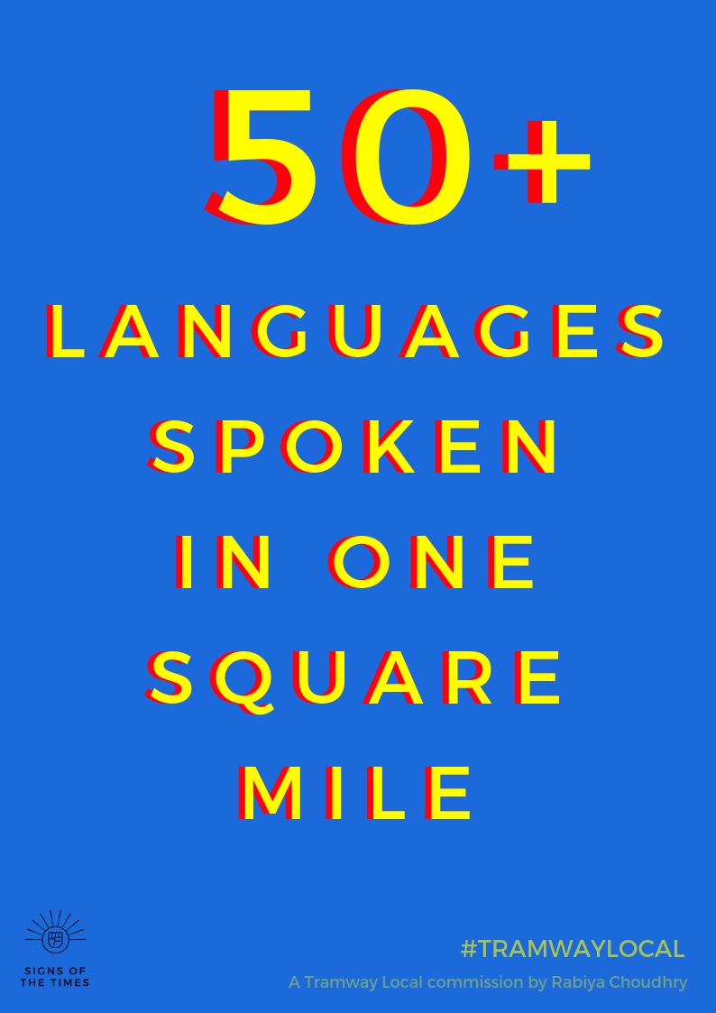 50+ Languages Spoken In One Square Mile Signs Of The Times 50+ Languages Spoken In One Square Mile (2017) 210mm x 297mm, Digitally printed poster Related