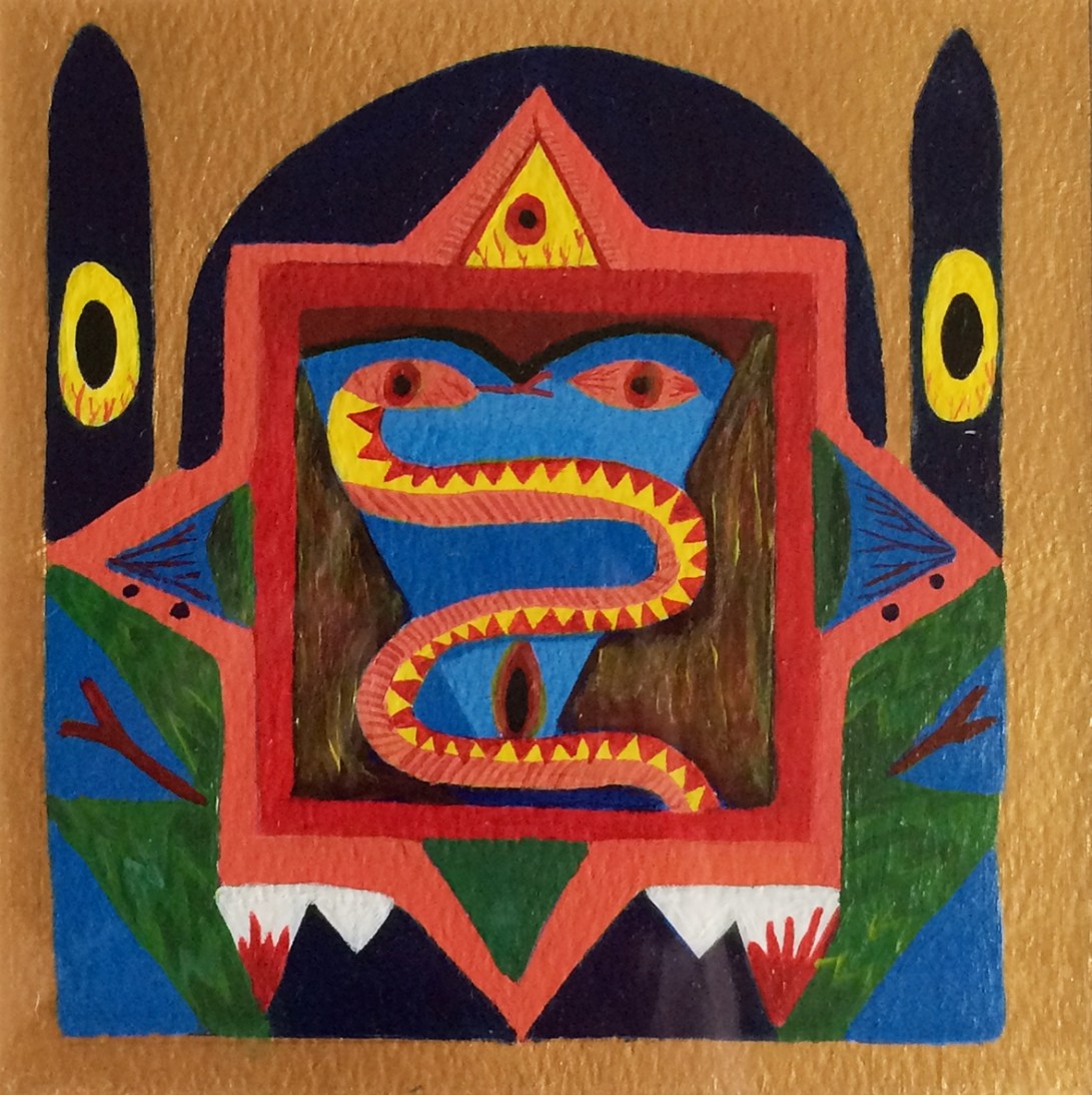 Journey Through Jinnistan 4 of 8 Journey Through Jinnistan Journey Through Jinnistan 4 of 8 (2015) 150mm x 150mm, Acrylic on paper, Image by artist Related